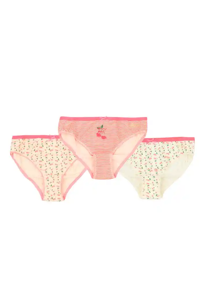 Pack triple bikini kids niña ficcus 644 Talla: 6 años Género: Niña Modelo :Ri Composición: 95% Algodón 5% Elastano Garantía: 6 meses Cuidados de la prenda: Lavado con agua a tº máxima de 30º. No blanquear. No secar a máquina. Planchar a temperatura baja