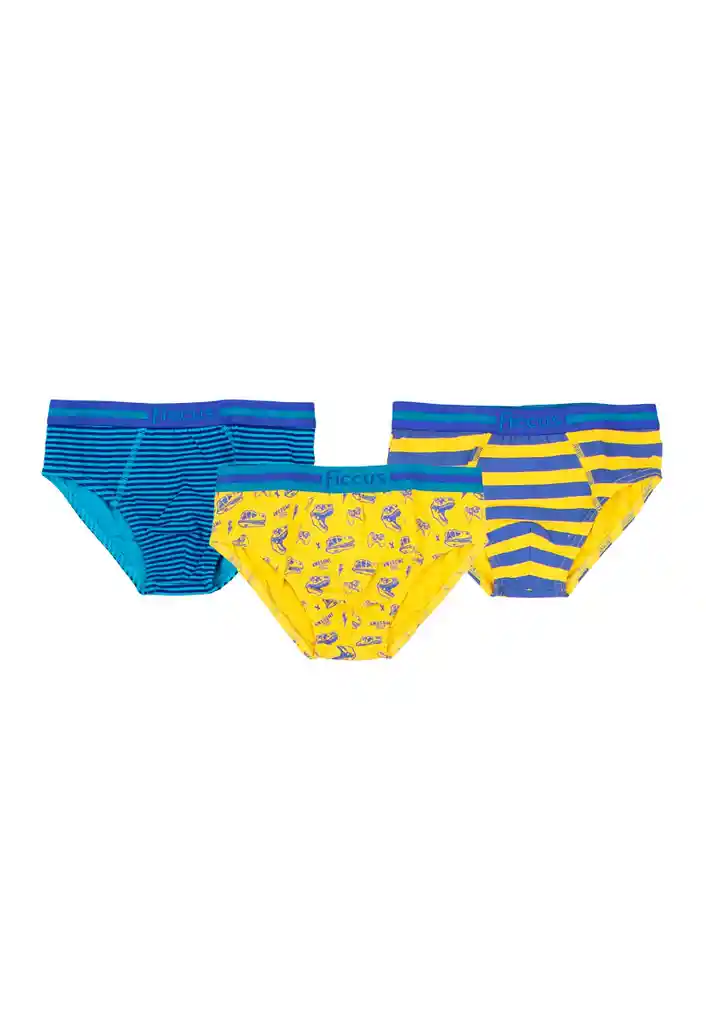 Pack triple briefs kids niño ficcus 641 Talla: 4 años Género: Niño Modelo :Ri Composición: 95% Algodón 5% Elastano Garantía: 6 meses Cuidados de la prenda: Lavado con agua a tº máxima de 30º. No blanquear. No secar a máquina. Planchar a temperatura baja