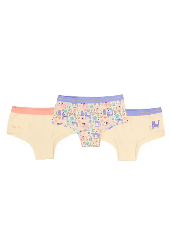 Pack triple pantaleta kids niña ficcus 643 Talla: 4 años Género: Niña Modelo :Ri Composición: 95% Algodón 5% Elastano Garantía: 6 meses Cuidados de la prenda: Lavado con agua a tº máxima de 30º. No blanquear. No secar a máquina. Planchar a temperatura baja