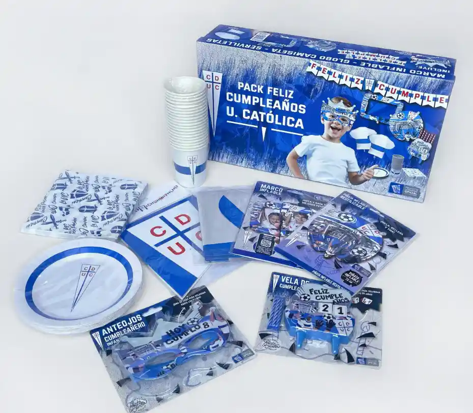 FIESTA CUMPLEAÑOS LINEAS LICENCIADAS Pack UC cumpleaños (Universidad Católica 20 Personas) Niño