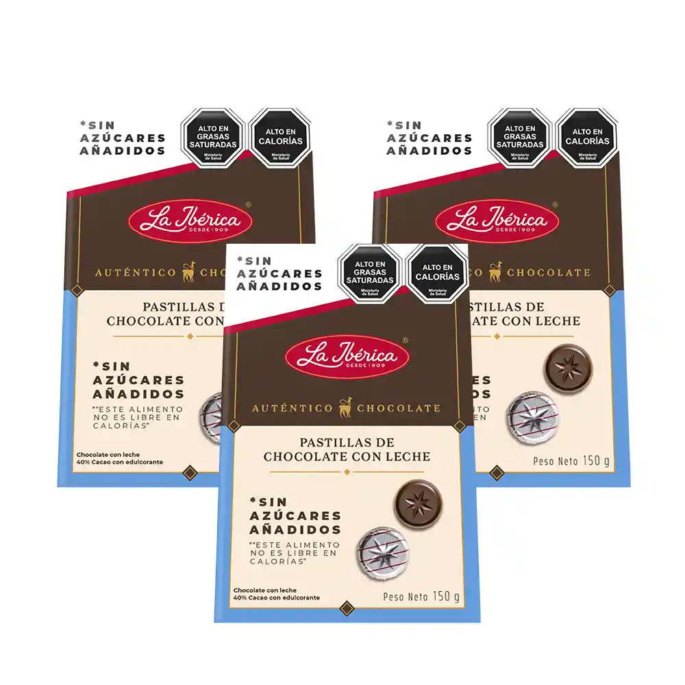 Pack X 3 Pastillas De Chocolate Con Leche Sin Azúcares Añadidos X 150 G