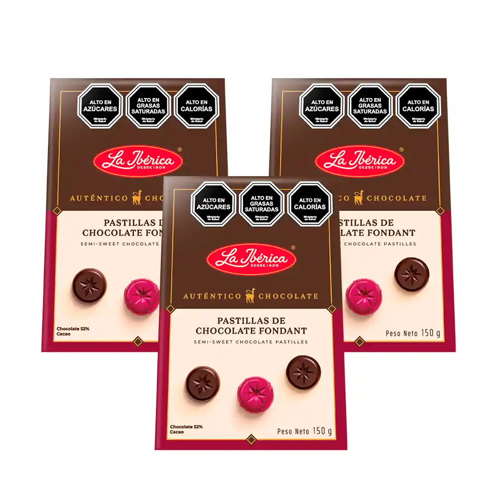 Chocolate semi dulce (sin leche), elaborado a base de: pasta de cacao, azúcar, manteca de cacao y lecitina de soya. Porcentaje de cacao: 52%.
