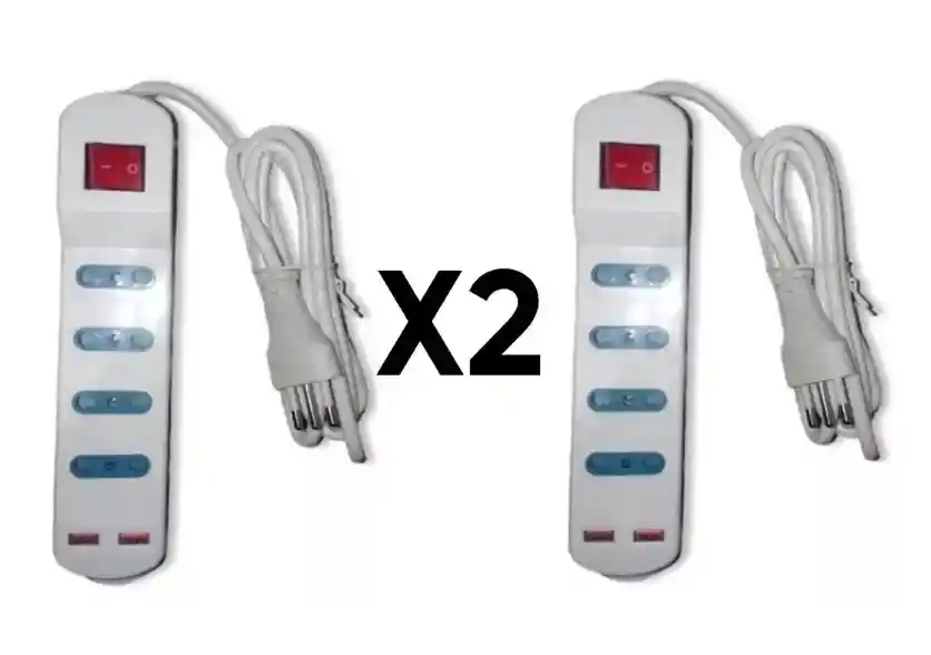 SOMOS MIKI IMPORTS PACK X2 ZAPATILLA ALARGADOR DESCRIPCIÓN DEL PRODUCTO - Alargador Corriente - Con 4 tomacorrientes - Largo del cable: 1.5 metros - Con 2 puertos USB - Posee switch de encendido y apagado