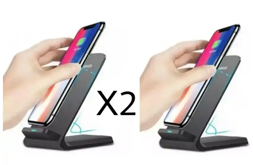 PACK DE 2 CARGADORES INALAMBRICOS Cargador inalámbrico universal para Smartphones de carga inalámbrica con tecnología integrada para proveer la carga correcta a tu dispositivo. Si te quieres deshacer de los cables, el soporte para teléfono y cargador inalámbrico es la solución ideal. El soporte ha sido desarrollado para funcionar como un soporte de escritorio para su teléfono mientras lo carga. Dado que el teléfono también se puede colocar en posición vertical, el soporte también es perfecto para realizar videollamadas u otras actividades. Puedes colocarlo horizontal o vertical, de acuerdo a tus necesidades. Es compatible con cualquier dispositivo que soporte el standard Qi. La estación de carga se puede utilizar de forma universal. ESTE CARGADOR NO ES ADECUADO PARA TELEFONOS INTELIGENTES SIN UNA FUNCION DE CARGA INALAMBRICA . Protege tu teléfono contra sobre voltaje, sobre corriente, y evita recalentamiento. Indicador Led cómodo a la vista, el indicador led te permite fácilmente chequear el estado de carga de tu teléfono sin que perturbe tu sueño con una luz molesta. Material: Plástico ABS. Standard: Qi Standard Entrada: 5V 2A; Salida: 9V 1.67A