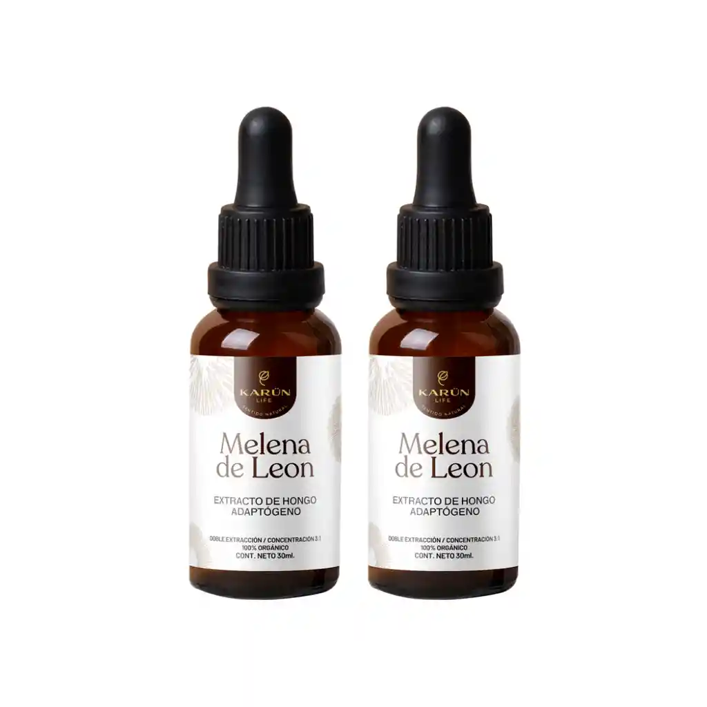 Pack 2 frascos de Melena de León concentrado 60 ml Nuestra fórmula única contiene extracto en gotas premium Hongo Melena de León para potenciar tu claridad mental, memoria y energía. Potencia tu cerebro y energía con cada gota de Melena de León. Elige un impulso natural. ¡Nuestros extractos son veganos, orgánicos y de alta concentración. BENEFICIOS: • Mente Activa: Estimula el cerebro, mejora la memoria y concentración. * • Tranquilidad Natural: Reduce estrés y ansiedad, proporcionando calma y fomentando un estado de bienestar sereno y natural. * • Revitaliza tu Día: Brinda energía y vitalidad para un bienestar equilibrado y un día activo y enérgico* • Acción Antioxidante: puede neutralizar los radicales libres y ayudar a reducir el estrés oxidativo en el cuerpo* • Digestión Equilibrada: Fomenta una digestión saludable y mantiene el equilibrio de la flora intestinal. * • Defensa Natural: Refuerza y equilibra el sistema inmunológico. * ¿Qué es la melena de león? La Melena de León o Hericium erinaceus, un hongo adaptógeno, florece en los bosques de Asia y América del Norte. Abundante en antioxidantes, potencia la salud cerebral y refuerza la inmunidad, promoviendo vitalidad y bienestar. CONTRAINDICACIONES No tomar personas embarazadas y niños menores a 8 años. Mantener en un lugar fresco. No dejar al alcance de niños. MODO DE USO Agitar antes de usar, añadir 30 gotas (una carga de la pipeta) a un vaso de agua, infusión o jugo a gusto una o dos veces al día. *Estas declaraciones no han sido evaluadas por la Administración de Alimentos y Medicamentos. Este producto no está destinado a diagnosticar, tratar, curar o prevenir ninguna enfermedad.