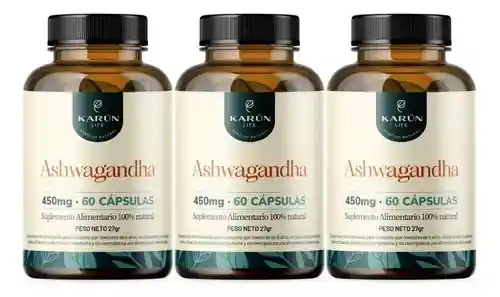 CÁPSULAS ASHWAGANDHA Karun Life – 180 Unidades (3 Mes) Conecta con el bienestar natural. Las CÁPSULAS ASHWAGANDHA son el complemento perfecto para quienes buscan reducir el estrés y mejorar su energía de manera natural. Con una fórmula adaptógena y 100% natural, cada cápsula está diseñada para ayudarte a mantener el equilibrio mental y físico, favoreciendo un estilo de vida más relajado y activo. -Aporta ingredientes clave que apoyan tu bienestar -Conocida por sus propiedades adaptógenas, contribuye a reducir el estrés y la ansiedad, ayudando a tu cuerpo a adaptarse a situaciones desafiantes. - Apoya el aumento de energía y la resistencia, combatiendo la fatiga para mantenerte activo durante el día. -Mejora cognitiva: Ayuda a promover la memoria y concentración, favoreciendo una mente clara y enfocada. Beneficios clave: -Favorece la reducción del estrés y la ansiedad, ayudando a equilibrar tu bienestar emocional. -Promueve la memoria y la concentración para un rendimiento mental óptimo. -Aumenta los niveles de energía y reduce la fatiga, favoreciendo una mayor vitalidad durante el día. -Ideal para quienes buscan un apoyo natural para gestionar el estrés y aumentar la energía sin efectos secundarios. Modo de Uso: Tomar 2 cápsulas al día, preferentemente con las comidas, para disfrutar de sus beneficios y mejorar tu bienestar. Por qué elegir CÁPSULAS ASHWAGANDHA Karun Life: -Diseñadas para apoyar un estilo de vida equilibrado y activo. -Aporta 60 cápsulas por frasco (un mes de uso). -Contiene ingredientes naturales que favorecen la relajación, el bienestar y el aumento de energía. Este producto es un suplemento alimentario y no reemplaza una alimentación equilibrada. No es un medicamento y no previene, trata ni revierte enfermedades. Ante cualquier duda, consulte con su médico tratante. Este producto no es recomendado para niños menores de 8 años ni para embarazadas.