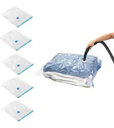 Pack X5 Bolsas Al Vacio Ropa Closet Salva Espacio 80x110cm . Bolsa Al Vacio Para Comprimir Ropa y Ahorrar Espacio . Ideal para guardar ropa de temporadas por tiempos prolongados . Podrá almacenar frazadas, Ropa de Estacion, Toallas, etc. . Le Permitirá ganar más espacio y mantener el orden en sus Armarios . No tóxico e hipoalergénico . Sellado es resistente al agua . Evitará que sus prendas agarren olor a humedad con el Tiempo de Almacenaje . Se puede utilizar con todo tipo de Aspiradoras . Material Nylon , poliuretano . Limpie su aspiradora antes de utilizarla . Ideal para guardar ropa de temporadas por tiempos prolongados . Perfecta para viajar . No incluir pesticidas . No incluye la aspiradora . Medidas 80cm x 110cm . Sellado es resistente al agua Contenidos del paquete: 5 x Bolsa de aire comprido para ropa 80x110cm