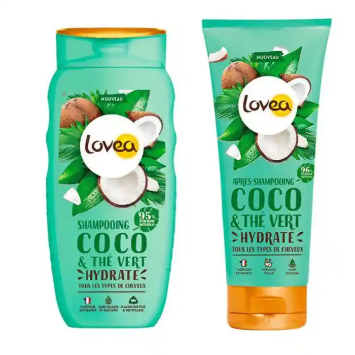 Shampoo 250ml Exquisita combinación de ingredientes de origen natural para cuidar tu cabello: Agua de Coco orgánica y extracto de Té Verde que entregan una cremosa y generosa espuma. Tu cabello quedará hidratado, suave, brillante y con un increíble aroma. Acondicionador 200ml Combinación perfecta de Agua de coco y extracto de té verde en una textura cremosa que desenreda el cabello sin apelmazarlo. ¿Resultados? Tu cabello quedará hidratado, brillante, flexible y huele increíblemente bien!