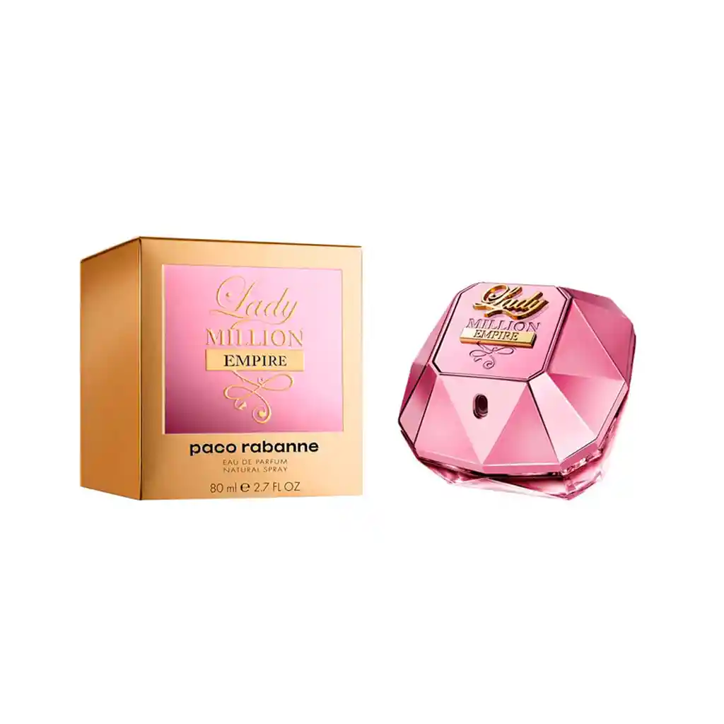 Lady Million Empire de Paco Rabanne es una fragancia de la familia olfativa Chipre Floral para Mujeres. Esta fragrancia es nueva. Lady Million Empire se lanzó en 2019. Lady Million Empire fue creada por Anne Flipo y Jean-Christophe Herault. Las Notas de Salida son grosella roja, naranja y esencia de neroli Las Notas de Corazón son ciruela Mirabel, magnolia, osmanto (olivo oloroso) y flor de azahar del naranjo Las Notas de Fondo son coñac, pachulí y almizcle blanco