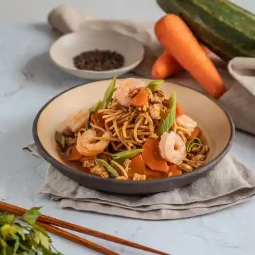 La traducción de Pad Thai, significa “Salteado tailandés” y algo muy característico es la combinación balanceada entre sabores agridulces y picantes. Los elementos principales son los tallarines de trigo, verduras, camarones, huevo, maní tostado. La receta y los condimentos pueden variar según el cocinero, pero uno de los elementos que no debe cambiar, es la salsa de tamarindo que debe hacerse de manera artesanal y a fuego lento como elaboramos en nuestras cocinas. Preparación artesanal, sin conservantes ni preservantes ¡Lista el sólo minutos! Para calentar en el Microondas. Conservando todas sus propiedades gracias a nuestra tecnología en envasado.