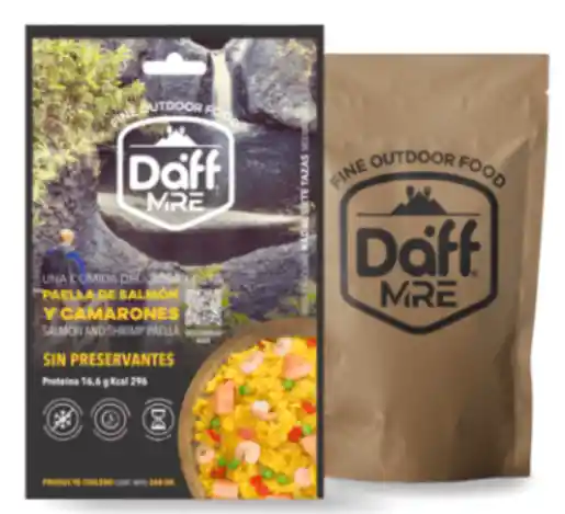 Paella de Salmón y Camarones en formatos pouch de 260 grs. Alimento práctico para transportar en tu mochila o equipaje, y fácil de manipular al momento de consumir el contenido, gracias a su envase doypack que puedes apoyar de forma vertical sobre cualquier superficie. No requiere refrigeración, es de larga duración y muy fácil de calentar. Opciones para Calentar: Baño María. Calentador Autónomo Daff. (10-12 minutos) Ingredientes: Agua, arroz, salmón, camarones, arvejas, pimentón rojo, cebolla, condimento paellero (Ajo, sal, páprika, colorante tartrazina, pimienta, clavo de olor, azafrán), sal, aceite vegetal refinado de maravilla. Información Nutricional: