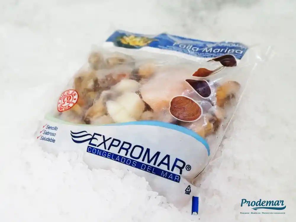 Contiene: Choritos y/o Cholgas, Lapa y/o Caracol, Tumbao y/o Taquilla, Macha y/o Navajuela, Salmón y/o Merluza, Calamar y/o Jibia y/o Camarones y Agua.