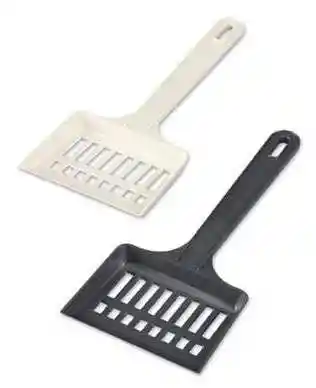 Paleta recoge excrementos para gatos.Fabricada en material plástico.- Está diseñada para quitar fácilmente la suciedad y excrementos de la cubeta.- Permite recoger los excrementos sin necesidad de llevarse gran cantidad de arena ó gránulos de la caja, ya que éstos caen por los recuadros.Medidas:- 28 x 12 x 2 cm