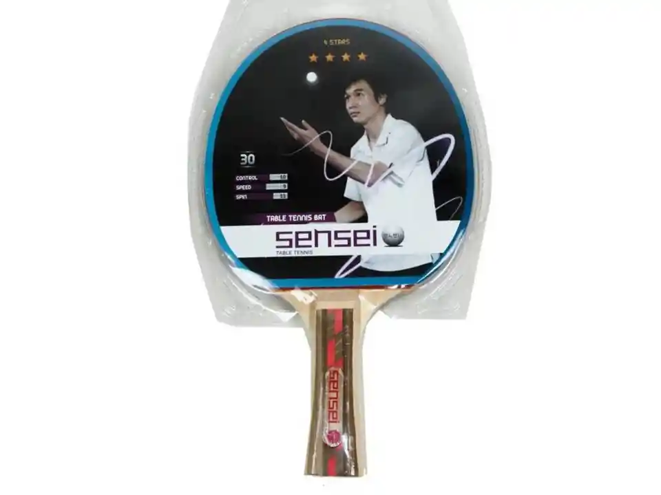 Con esta paleta de ping pong Sensei 4 Star tendrás largas horas de diversión donde quieras y con quien quieras. La práctica de este deporte mejora la capacidad y tiempo de reacción, la concentración, la memoria y la coordinación ojo-mano. Elegir la adecuada impactará en tu estilo de juego haciendo que sea más controlable y cómodo. Para el jugador que exige la mayor velocidad y efectos. Su tamaño y peso son los óptimos para un buen control y potencia en los tiros. Su superficie de goma le otorga mayor precisión para ayudarte a ganar nuevas habilidades. Material: Madera, goma. Presentación: Pack individual. Color: Rojo. Uso: Competición. Tamaño: Único. 4 estrellas. Velocidad de impacto: 9. Efecto de spin: 11. Efecto de control: 10.