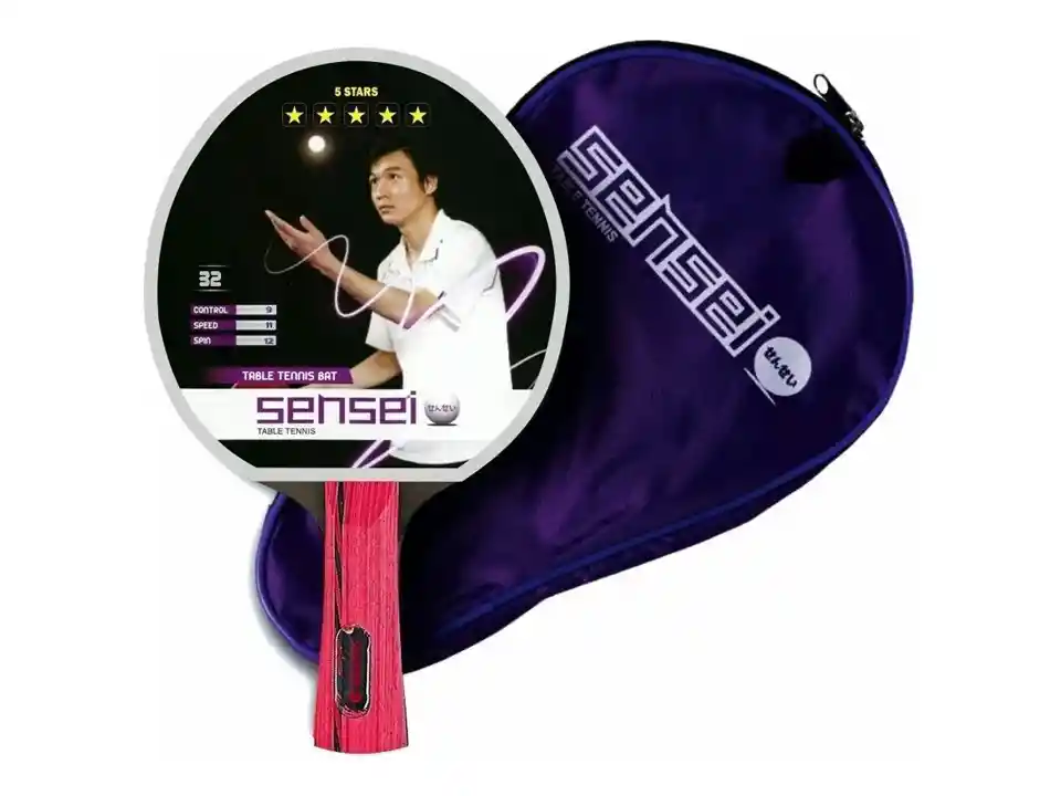Con esta paleta de ping pong Sensei 5 Star tendrás largas horas de diversión donde quieras y con quien quieras. La práctica de este deporte mejora la capacidad y tiempo de reacción, la concentración, la memoria y la coordinación ojo-mano. Elegir la adecuada impactará en tu estilo de juego haciendo que sea más controlable y cómodo. Para el jugador que exige la mayor velocidad y efectos. Su tamaño y peso son los óptimos para un buen control y potencia en los tiros. Su superficie de goma le otorga mayor precisión para ayudarte a ganar nuevas habilidades. Material: Madera, goma. Presentación: Pack individual. Color: Rojo. Uso: Competición. Tamaño: Único. 5 estrellas. Velocidad de impacto: 11. Efecto de spin: 12. Efecto de control: 9. Accesorios: Estuche con cierre. Garantiza durabilidad y comodidad al jugador.