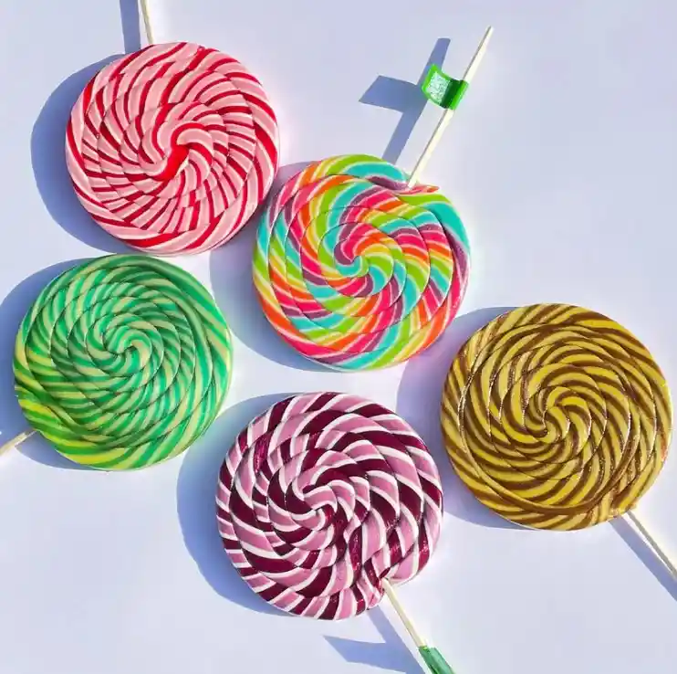 Es una de nuestras paletas clásicas pero en mega extra grande de tamaño 🍭🌱❤️... Son más de 400gr. de caramelo disponible en varios sabores y con los mismos diseños de las paletas más pequeñas!!!... Pensábamos que era mucho... pero parece que nunca es suficiente caramelo!!! Las amamos... son enormes... Son 13,5 cm de Diámetro por 1,8 cm de grosor O SEA!!!!!!! ¡Dignas del Quico! Revivimos algunos sabores clásicos y dentro de la gama de sabores que tenemos podrás encontrar dos sabores de Helados transformados 🍦🍭🌱❤️ Todos nuestros caramelos son naturales, veganos, libres de gluten, libres de soya y libres de lactosa.... Elaboradas solo con esencias naturales de Frutas, flores, árboles o vegetales. Todos nuestros caramelos son naturales, veganos, libres de gluten y libres de soya.