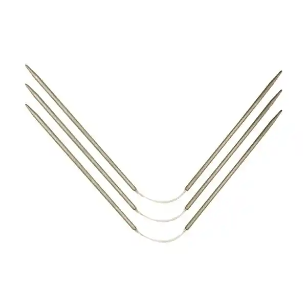 ¡Tejer calcetines nunca fue tan fácil! ¿Por qué usar 5 cuando puedes usar 3? Fabricados en aluminio de alta calidad, cada set contiene 3 agujas de doble punta y cada aguja un cordon intermedio para otorgarle gran flexibildad. El set es ideal para tejer en circular (sin costuras). Puedes hacer calcetines, guantes, gorros, o incluso las piezas de diámetro pequeño pueden ser tejidas con mucha facilidad. Para tejer en redondo los puntos se distribuyen en dos agujas y la tercera aguja se usa para tejer, lo que significa que solo hay dos cambios de aguja por fila. ¡Anímate a descubrir esta nueva e inovadora forma de crear tus proyectos! Medidas: 2.00 - 2.50 - 3.00 - 3.50 - 4.00 - 4.50 - 5.00 - 5.50 mm.