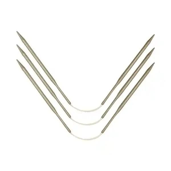 ¡Tejer calcetines nunca fue tan fácil! ¿Por qué usar 5 cuando puedes usar 3? Fabricados en aluminio de alta calidad, cada set contiene 3 agujas de doble punta y cada aguja un cordon intermedio para otorgarle gran flexibildad. El set es ideal para tejer en circular (sin costuras). Puedes hacer calcetines, guantes, gorros, o incluso las piezas de diámetro pequeño pueden ser tejidas con mucha facilidad. Para tejer en redondo los puntos se distribuyen en dos agujas y la tercera aguja se usa para tejer, lo que significa que solo hay dos cambios de aguja por fila. ¡Anímate a descubrir esta nueva e inovadora forma de crear tus proyectos! Medidas: 2.00 - 2.50 - 3.00 - 3.50 - 4.00 - 4.50 - 5.00 - 5.50 mm.