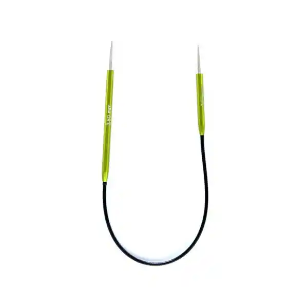 Knit Pro nos sorprende con los nuevos palillos circulares cortos asimétricos de la línea Zing.Fabricadas en metal liviano en colores vibrantes. Cada color representa una medida específica de palillo. Lo especial de estos palillos es que uno mide 4,5cm y el otro es de 7,0cm de largo, el cable es de 13,5cm, haciendo una longitud total de 25cm. El palillo más largo se sujeta con la mano derecha para tejer y la más corta con la izquierda, esto hace que tejer los diámetros más pequeños (calcetines, mangas para bebes, puños, etc.) sea mucho más cómodo. Disponible en 11 medidas:2.00 - 2.25 - 2.50 - 2.75 - 3.00 - 3.25 - 3.50 - 3.75 - 4.00 - 4.50 - 5.00 mmCada palillo cuenta con un largo de 25 cm de extremo a extremo.