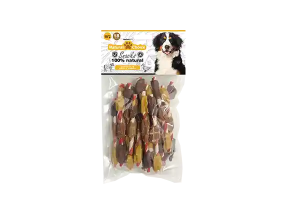 os Palitos Triple Sabor Pollo, Higado, Pato – 18 und ayudan a mejorar la salud bucal, a mantener los dientes limpios al liberarlos de la placa bacteriana, además de ser un perfecto snack que brinda entretención y placer a tu mascota. Son una huesitos 100% naturales de cartílagos con cuero rojo envueltos en pollo, hígado y pato para perros.