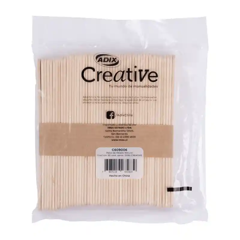 Palos de helado, color madera natural. Ideal para manualidades, trabajos escolares, maquetas. Medidas de 11,4 x 1 cm aproximadamente. Contenido 50 unidades aproximadamente. Producto no apto para menores de 3 años.