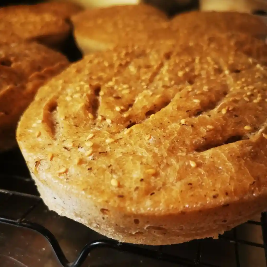 Pan de Masa madre integral, formato 450g es un pan compacto, libre de gluten y vegano, elaborado con harinas de trigo sarraceno, harina de arroz integral, harina de arroz y almidón de mandioca, fermentación natural con masa madre, con aceite de oliva, goma xanthan y sal Producto puede ser enviado fresco o congelado, dependiendo si coincide con los días designados para su elaboración En caso de recibir el producto congelado, dejar descongelar a temperatura ambiente, una vez descongelado, se puede rebanar y consumir idealmente tostado, conservar en envase cerrado y refrigerado por un periodo aproximado de 1 semana. Libre de gluten apto para celiacos Vegano