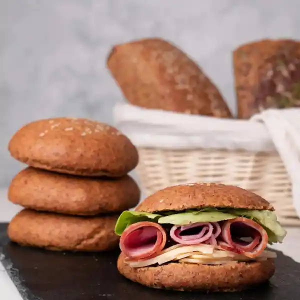 Elaborado en base a harina de almendras sin piel, harina de linaza dorada, huevos de gallina de libre pastoreo y sal de mar. Perfecto sabor y textura, EN FORMATO HALLULLAS, para que lo disfrutes en sándwiches, una rica hamburguesa o simplemente con mantequilla.