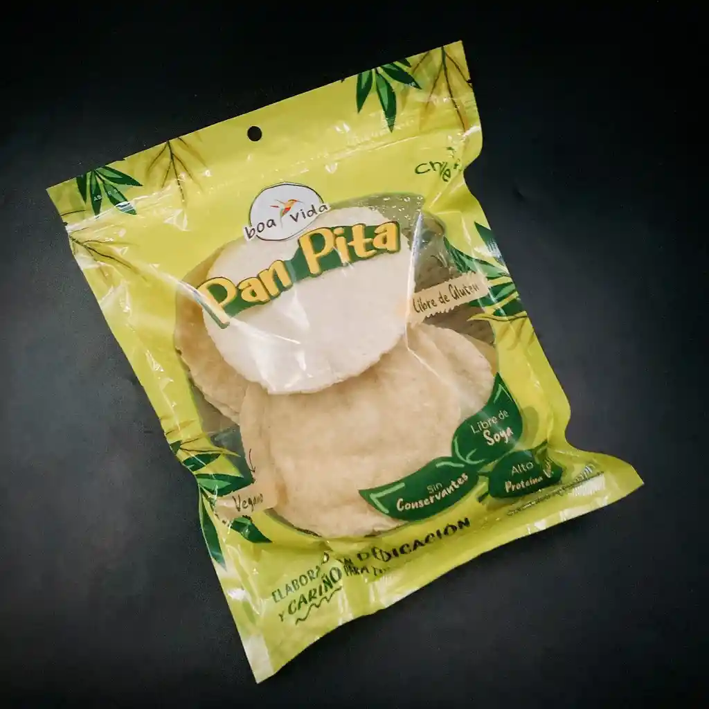 Pan Pita, formato fresco, si el producto recibido se encuentra caliente este será enviado en bolsa de papel y al lado una bolsa para su envasado frío, es de vital importancia que se envase una vez frío , de lo contrario se endurecerá. Producto libre de gluten apto para celiacos Vegano Ingredientes: Almidón de maiz, almidón de mandioca, harina de trigo sarraceno, proteína de arveja, aceite de oliva, goma xanthan, psyllium, sal, levadura.