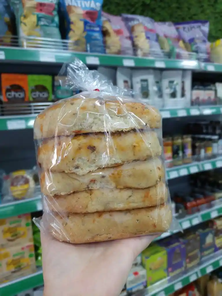 PAN TOMATE Y ALBAHACA KETO Ingredientes: Pre fermento de harina de coco, mijo, harina de linaza, mantequilla, psyllium, levadura, sal de mar, agua de avena y arroz, vinagre de manzana, ajo, orégano. Contiene o podría contener trazas o derivados de: lácteos, gluten, semillas, frutos secos. Producto no apto para Celiacos.