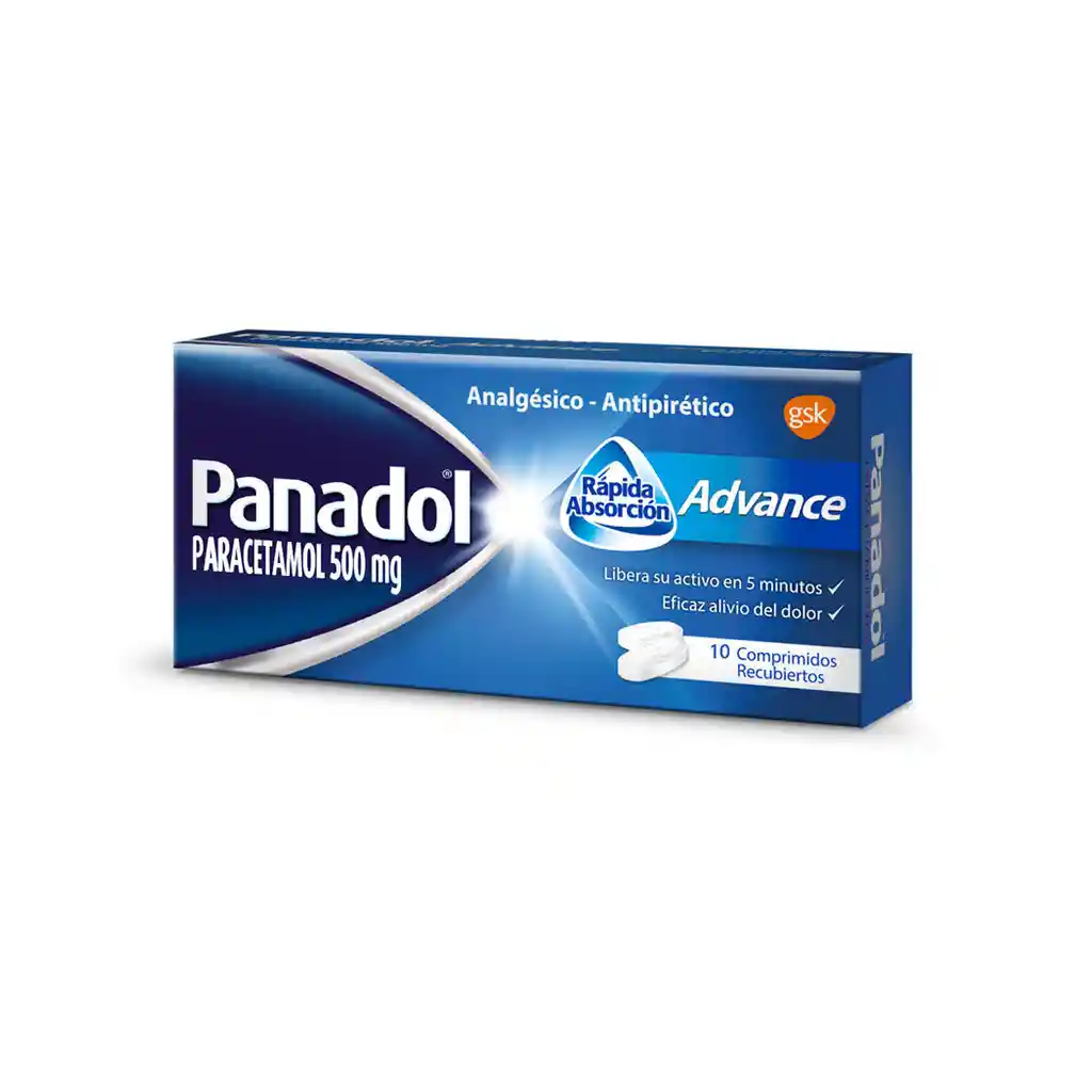 Principio Activo: Paracetamol / Forma Farmacéutica: Comprimidos / Dosis Por Forma Farmacéutica: 500 mg. ¿Para Qué Enfermedades o Condiciones se Prescribe Este Medicamento? Tratamiento Para la Fiebre y de Dolores Suaves a Moderados. Analgésico y Antipirético. ¿Cómo Debo Usar Este Producto? (Posología) el Médico Debe Indicar la Posología y el Tiempo de Tratamiento Apropiado Para su Caso Particular, no Obstante la Dosis Usual Recomendada Es: Adultos y Niños Mayores de 12 Años: 325 ó 500 mg Cada 4-6 Horas, Según Sea Necesario, Por un Máximo de 5 Días, si se Usa Para Aliviar un Dolor o 3 Días si se Usa Para Controlar la Fiebre. Si no Hay Mejoría o Aparecen Otros Síntomas, Consulte Con su Médico. No Utilizar Más de 4 g al Día. En Tratamientos Largos, la Dosis no Debe Ser Mayor de 2.6 g Diarios. Presentación (Forma Farmacéutica y Dosis) Panadol Advance Viene en Envase Con 10 Comprimidos Recubiertos Que se Toman de Forma Oral, la Dosis es de 500 mg Por Comprimido. Condiciones de Almacenamiento Mantener en su Envase Original, Fuera Del Alcance de Los Niños, Protegido Del Calor, la Luz y la Humedad. Principio Activo (Nombre Genérico) Paracetamol. Advertencias de Uso no Administrar Por Más de 5 Días en Caso de Dolor, Por Más de 3 Días en Caso de Fiebre, o Por Más de 2 Días en Caso de Dolor de Garganta Sin Consultar al Médico. El Uso Prolongado y de Altas Dosis de Paracetamol, Puede Provocar Severo Daño Hepático. Este Producto no Debe Administrarse a Menores de 12 Años, Sin Consultar Dosis al Médico. – en Caso de Sospecha de Una Intoxicación Por la Administración de Una Mayor Dosis Que la Señalada se Puede Presentar el Siguiente Cuadro: Vómitos, Náuseas, Dolor Abdominal Superior. – en Estos Casos Debe ir a un Centro Asistencial. – en Todos Los Casos, de Sospechar Una Sobredosis Debe Consultar al Médico Aún Cuando no se Presenten Síntomas. – Ancianos: No es Necesario Modificar Las Dosis en Ancianos Sanos. – Embarazo y Lactancia: No se Han Encontrado Antecedentes de Efectos Adversos, Usar Con Autorización Del Médico. – en Enfermos Alcohólicos Dar Sólo Por Períodos Breves y Con Autorización Del Médico. Antes de Usar Este Medicamento, Consulte Con el Médico Sobre Los Siguientes Aspectos: – Alergias: Si Ud. Ha Presentado Anteriormente Alguna Reacción Alérgica a Este Medicamento o a Otras Sustancias, ya Sea Alimentos, Preservantes, Colorantes, Saborizantes u Otros Medicamentos Analgésicos. – Enfermedad Del Hígado o Del Riñón: Dar Sólo Por Períodos Breves y Con Autorización Del Médico. Paracetamol es un Medicamento Que se Encuentra Solo o en Combinación Con Otros Principios Activos, en Productos Destinados al Tratamiento de Resfrío, Tos, Alergia, Entre Otros. Algunos de Estos Productos Pueden Venderse Libremente y Otros Requieren Receta Médica. Paracetamol Puede Causar, Aunque Con Poca Frecuencia, Reacciones Graves a la Piel, Que Pueden Manifestarse Con Enrojecimiento, Erupción Cutánea, Ampollas y Daños en la Superficie de la Piel. Si Usted Desarrolla Erupción Cutánea u Otra Reacción a la Piel Mientras Usa Paracetamol, Deje de Tomarlo y Acuda al Médico Inmediatamente. Si ya ha Tenido Reacciones a la Piel Con Paracetamol, no Tome Medicamentos Que lo Contengan. Paracetamol Puede Causar, en Dosis Superiores a Las Habituales, Graves Daños al Hígado, Que se Pueden Manifestar Con Síntomas Como Fatiga Inusual, Anorexia, Náuseas y/o Vómitos, Dolor Abdominal, Ictericia (Coloración Amarilla de Piel y/o de la Zona Blanca de Los Ojos), Orina Oscura o Deposiciones Blanquecinas. En Caso de Presentar Alguno de Estos Síntomas, Suspenda el Uso Del Medicamento y Acuda al Médico. Es Importante Mantener Este Medicamento Lejos Del Alcance de Los Niños y de Personas Con Tendencias Suicidas y Acudir Por Ayuda Médica Inmediatamente si se ha Ingerido Una Cantidad Significativamente Superior a la Habitual (El Doble de la Dosis Diaria Normal o Más). Dosificación Cada Comprimido Recubierto Contiene 500 mg de Paracetamol. Reacciones Adversas Los Medicamentos Pueden Provocar Algunos Efectos no Deseados, Además de Los Que se Pretende Obtener. Algunos de Estos Efectos Pueden Requerir Atención Médica. Consulte Inmediatamente al Médico si Presenta Alguno de Los Síntomas Siguientes: Dolor en el Estómago, Diarrea, Vómitos, Ictericia. Trastornos Sanguíneos Que se Pueden Manifestar Por Escalofríos, Fiebre, Úlceras en la Boca, Irritación de la Garganta o Bien, Debilidad y Cansancio o Hemorragias. Hepatitis (Piel y Ojos Amarillos). Falla Renal (Disminución de la Orina). Pueden Ocurrir Otros Efectos no Deseados Que Usualmente no Requieren Atención Médica y Que Desaparecen Con el Uso (Adaptación Del Organismo al Medicamento). No Obstante, si Continúan o se Intensifican, Debe Comunicarlo al Médico. Reacciones Alérgicas, Picazón y Manchas en la Piel, Malestares Estomacales. Contraindicaciones Este Medicamento no Debe Ser Usado, a Menos Que el Médico lo Indique Expresamente, en Pacientes Que Presenten Alguna de Las Siguientes Condiciones: – Hipersensibilidad: Está Contraindicada en Pacientes Que Previamente Hayan Sufrido Reacciones Alérgicas u Otros Trastornos Causados Por el Paracetamol, el AAs o Por Alguno de Los Otros Componentes de la Fórmula. – Enfermedad Hepática o Renal – Consumo Excesivo de Bebidas Alcohólicas Condición de Venta Venta Libre.