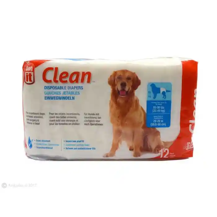 Los pañales desechables son super absorbentes y tiene un calce seguro a prueba de derrames. Proporcionan una protección cómoda y confiable contra fugas debido incontinencia, micción por excitación, hembras en celo y perros en su post operatorios que se recuperan de cirugías de la parte inferior del cuerpo. Ideal para prevenir manchas en tu hogar o vehículos durante el viaje. Los pañales tienen un gran poder absorbente y un ajuste seguro a prueba de fugas. Ideal para la prevención de manchas en el hogar o en tu vehículo durante viajes. USO: Con las lengüetas en el lado inferior y la almohadilla orientada hacia adentro, desliza la cola de tu perro por el orificio y coloca el pañal entre las patas traseras de modo que quede ceñido al vientre. Coloca las lengüetas regulables sobre el lomo de tu perro para lograr un calce seguro. Contenido: 12 unidades. Tallas y Medidas: Talla S: Ideal para perros pequeños de 3,6 a 6,8 kilos de peso y 33 a 48,2 cm de perímetro de cintura. Talla M: Ideal para perros medianos de 6,8 a 15,8 kilos de peso y 42 a 53,3 cm de perímetro de cintura. Talla L: Ideal para perros grandes de 15,8 a 24,9 kilos de peso y 45,7 a 57,2 cm de perímetro de cintura. Talla XL: Ideal para perros grandes de 25 a 40 kilos de peso y 50,8 a 66 cm de perímetro de cintura.