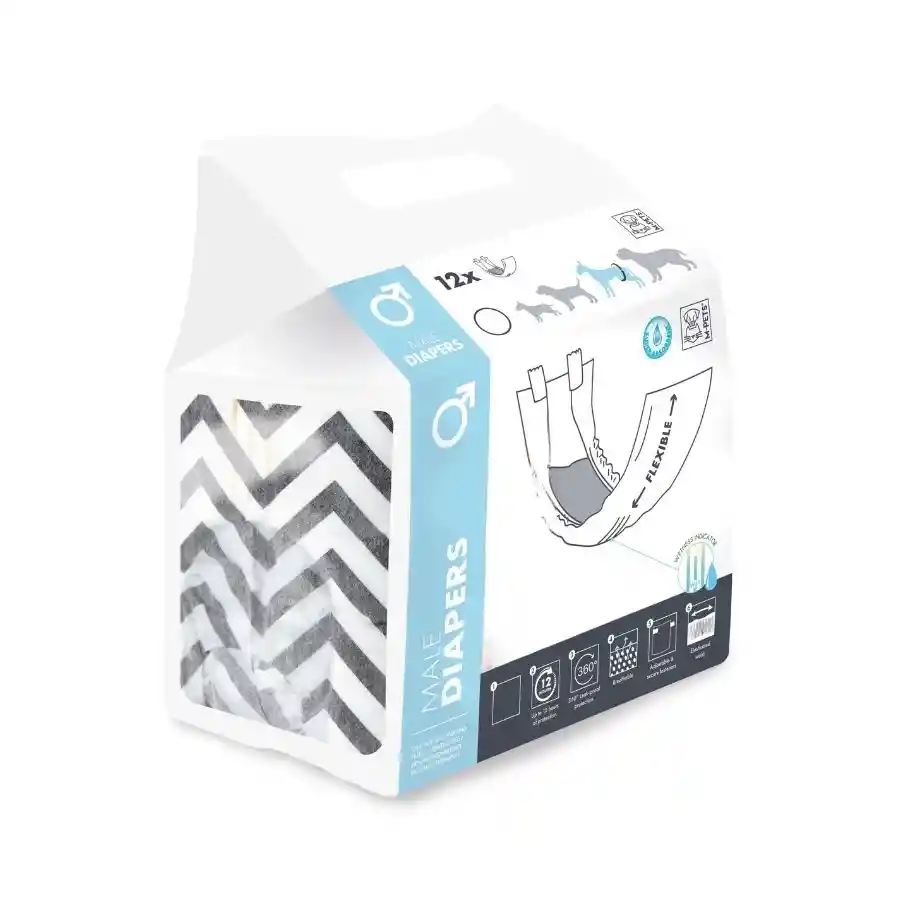 Los pañales desechables M-Pets son la solución perfecta para controlar la incontinencia urinaria, la micción excitable y el marcaje masculino de su perro macho. Súper absorbente con tiras adhesivas ajustables para un ajuste seguro y cómodo. El indicador de humedad muestra cuándo es el momento de cambiar el pañal de tu perro y ofrece hasta 12 horas de protección. Las medidas en centimetros representa la circunferecia de la cintura. Medidas de tallas: Talla S: 15 - 30 cm / 1.5 a 4 kg Talla M: 28 - 42 cm / 4 a 8 kg Talla L: 40 - 52 cm / 6 a 17 kg Talla XL: 54 - 66 cm / 15 a 28 kg