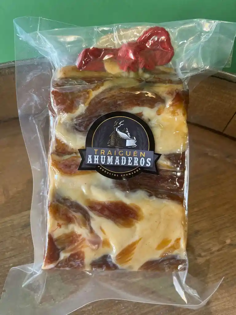 Un verdadero manjar del sur de Chile. Esta panceta artesanal, curada lentamente y ahumada con maderas nativas, destaca por su sabor profundo y su textura jugosa. Elaborada por la charcutería Ahumaderos Traiguén, es un lujo versátil para cualquier mesa. Ideal para el picoteo en la parrilla, huevos revueltos o como ingrediente estrella en preparaciones gourmet: habas a la crema trufada con panceta, quiches, pastas, o lo que tu creatividad culinaria inspire. 🔸 Curado y ahumado artesanalmente 🔸 Producto 100% natural y sin aditivos 🔸 Sabor auténtico del sur chileno
