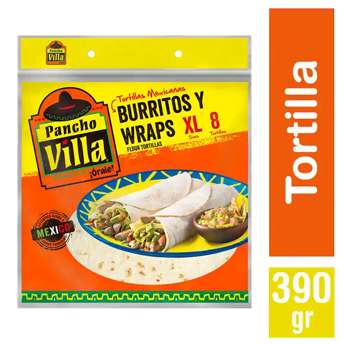 Su Tamaño es Más Amplio Que la Tortilla Tradicional, Permitiendo Aumentar el Relleno, Gracias a Las Cualidades de Las Recetas Pancho Villa, la Masa Conserva su Elasticidad, Haciendo Que al Doblarse no se Resquebraje ni se Desarme. Contiene 8 Unidades.
