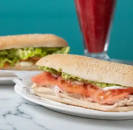 Pan de 20 cm relleno con ave, palta, tomate, mayonesa y ciboulette