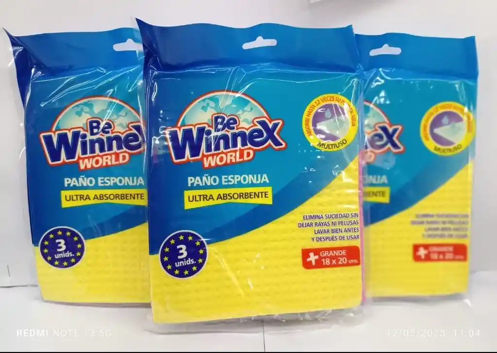 Paño esponja que absorbe hasta 12 veces su peso en agua. Especial para eliminar suciedad y enjuagar, sin dejar rayas ni pelusas. Recomendación: lavar bien antes y después de usar. Vienen tres unidades por paquete.