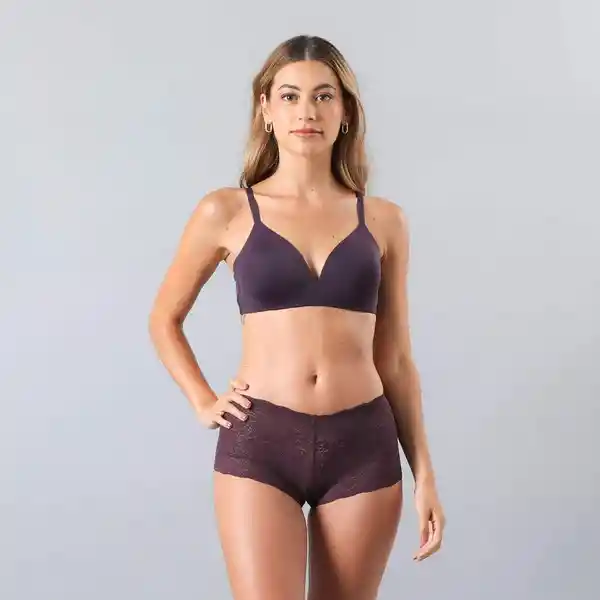 Encaje y Otra Microfibra Color Ciruela Talla M 85% Poliamida y 15% Elastano.