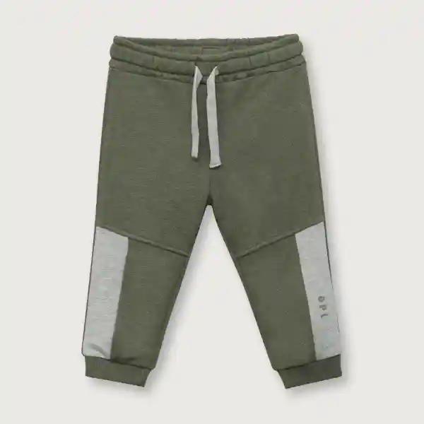 Niño Pretina y Puños de Mini Canale Eslasticado Con Cordon Ajustable en Cintura y Bolsillos Argentinos Delanteros Diseño Con Bloques de Color Gris Melange al Costado de Pierna. Color Predominante Verde Militar.