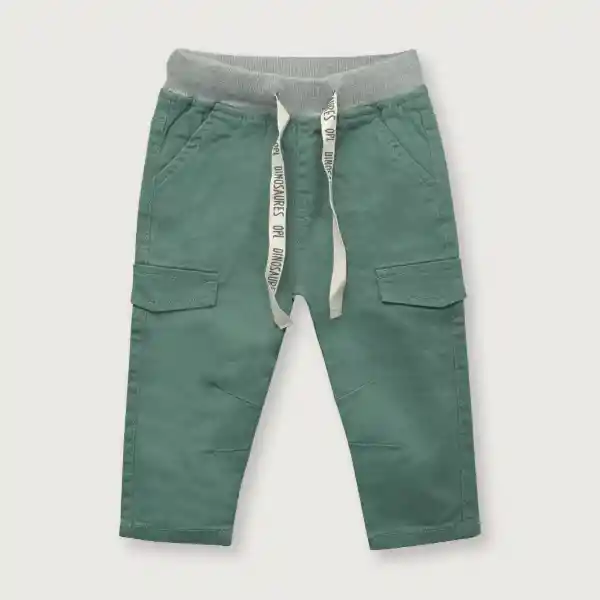 Cargo de Niño Con Pretina de Mini Canale Elasticado y Cordon Ajustable Con Bolsillos Laterales Cargo y Bolsilos de Parche en Trasero. Prenda Color Verde Militar y Gris Melange.