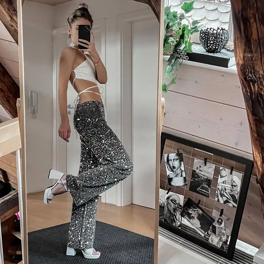 MATERIAL Tipo de tela: Pleuche DESCRIPCIÓN TALLAS Talla S Cintura 64-72 Largo 100 Cadera 94-100 Circunferncia pierna 53 Talla M Cintura 66-74 Largo 102 Cadera 96-106 Circunferncia pierna 53 Talla L Cintura 68-78 Largo 105 Cadera 96-110 Circunferncia pierna 54