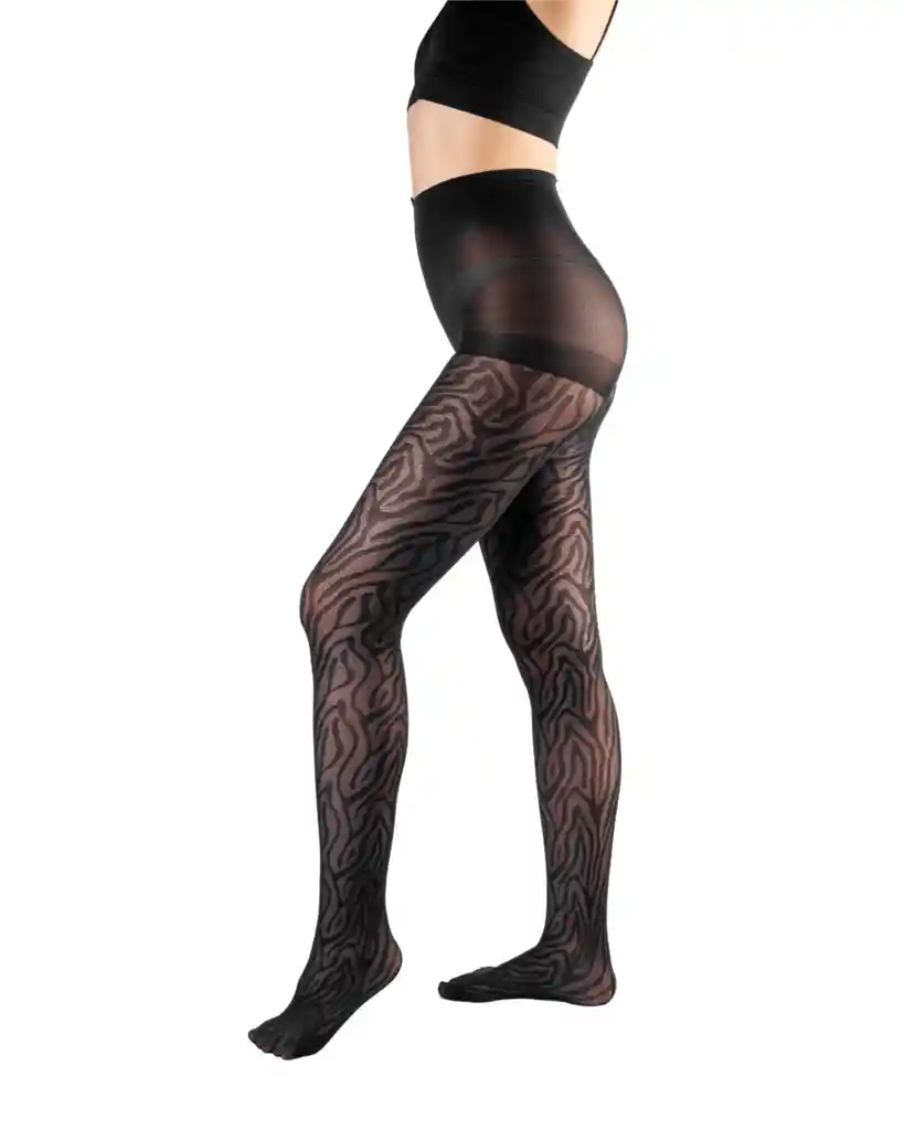 Pantys con diseños 70 denier Pantys negras Textura suave con cuadro anatómico para cada ocasión Talla S-M: 40 a 60 Kg / 1,40 cm a 1,60 cm aprox Talla L-XL: 60 a 77 Kg / 1,60 cm a 1,77 cm aprox 90% Nylon 10% Lycra