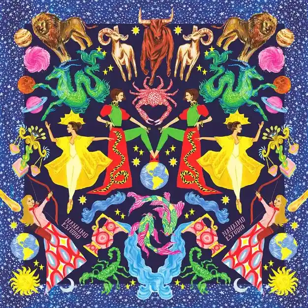 El pañuelo ASTROLOGÍA es el primero de la nueva colección de Nanaimo Estudio hecho con seda poliéster conformada por un 67% de botellas de plástico recicladas, lo cual es parte de nuestro plan de convertirnos en una marca totalmente consciente y comprometida con el medio ambiente. Las ilustraciones originales de este nuevo pañuelo fueron pintadas completamente a mano, otorgando de esta forma un carácter más orgánico y mágico a cada uno de los signos zodiacales representados en esta composición. El azul oscuro de fondo y sus bordes con un cielo estrellado y galáctico, permiten generar gran contraste y dramatismo, en el mejor sentido de la palabra, con todos estos personajes ancestrales que solo quieren brillar y destacar. Medida: 68 x 68 cm aprox. Tela: Seda poliéster elaborada con botellas de plástico recicladas.
