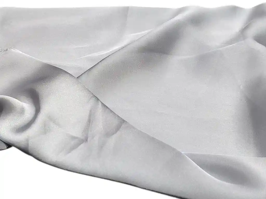 Pañuelo de acabado sedoso en tono plata suave, de diseño liso y minimalista que destaca por su elegancia atemporal. Su textura fluida y brillo sutil lo convierten en un accesorio versátil, ideal para complementar looks formales o aportar un toque sofisticado a estilos cotidianos. Una pieza esencial que transmite pureza, modernidad y refinamiento.70x70cm