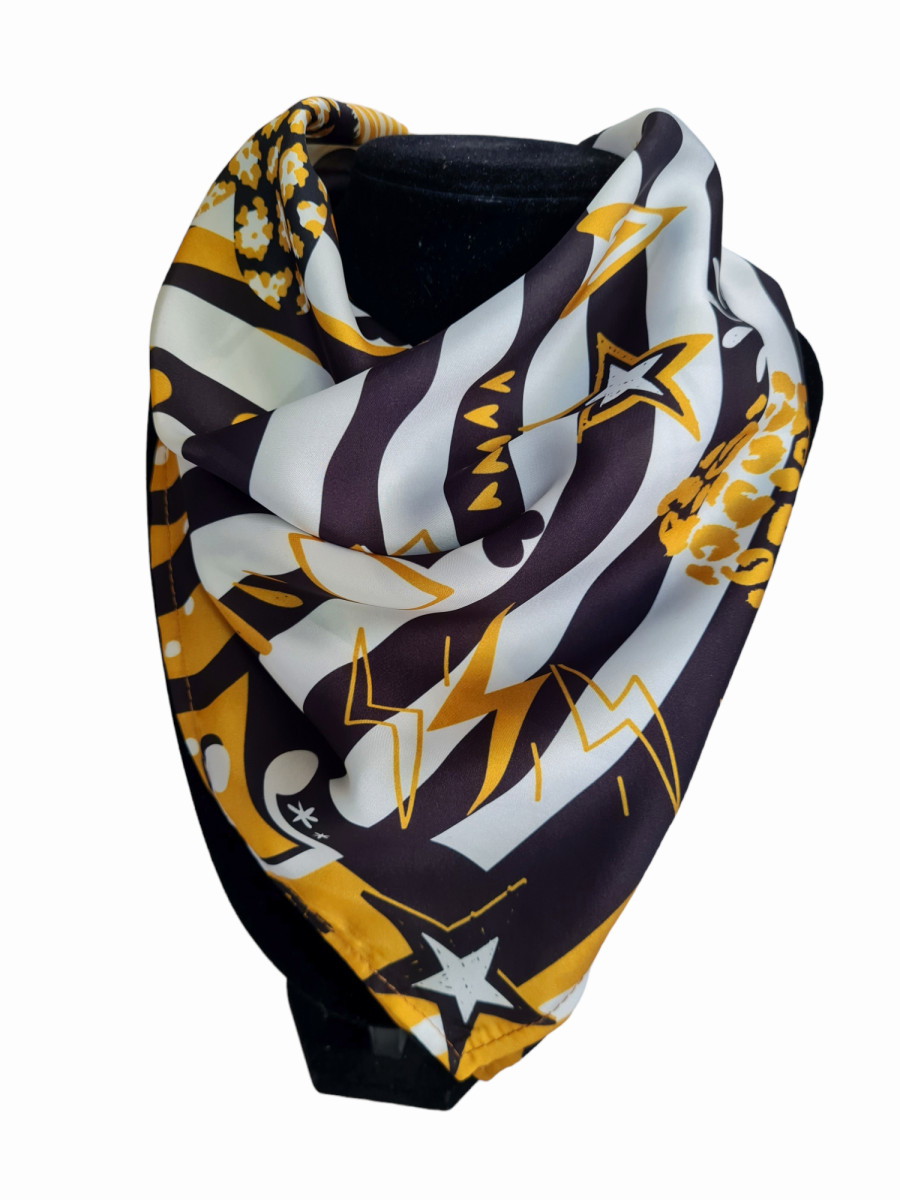 Pañuelo corto, ideal para darle un toque rockero a tu outfit. Sin duda te hará sentir muy ondera y estilosa. Perfecto para regalar y lucirte en cualquier ocasión. Se entrega envuelto en un papel seda dentro de una preciosa cajita. Perfecta para regalar y quedar como reina.