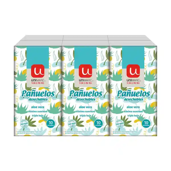 Pañuelo De Aloe Vera, Máxima Protección, Triple Hoja, Ideal Para La Limpieza Y Cuidado De La Piel, Contiene 6 Cajas X 10 Unidades Cada Uno. Packing: Caja packing: Bolsa