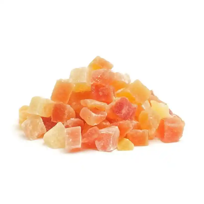 Disfruta el dulce y tropical sabor de nuestra Papaya Deshidratada, un snack de vibrante color y textura suave que, al ser una fuente de vitaminas y fibra, es perfecto para cualquier momento; su exquisito dulzor natural y valiosos nutrientes se preservan a la perfección gracias a nuestro exclusivo envase con tecnología de triple protección.