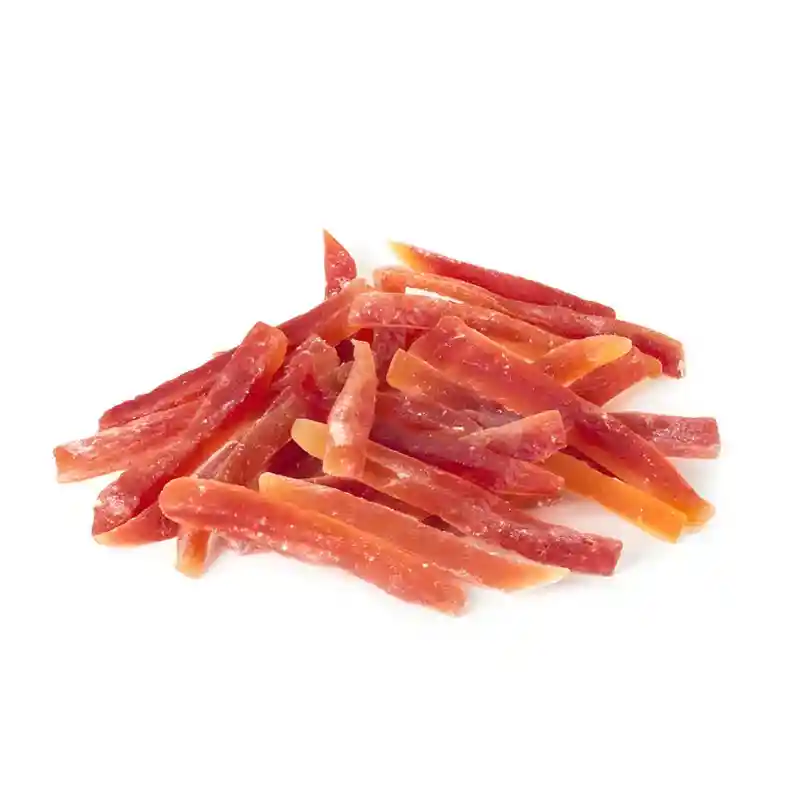 Disfruta el dulce y tropical sabor de nuestra Papaya Deshidratada, un snack de vibrante color y textura suave que, al ser una fuente de vitaminas y fibra, es perfecto para cualquier momento su exquisito dulzor natural y valiosos nutrientes se preservan a la perfección gracias a nuestro exclusivo envase con tecnología de triple protección.