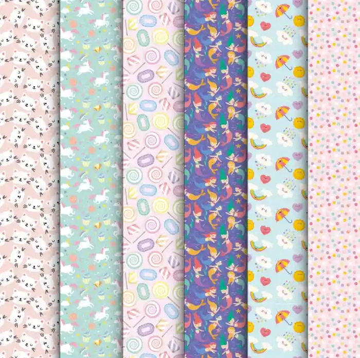 Papel de regalo couche niña medias aprox: 100 x 60 cms (se envian variados de acuerdo al stock de la tienda)