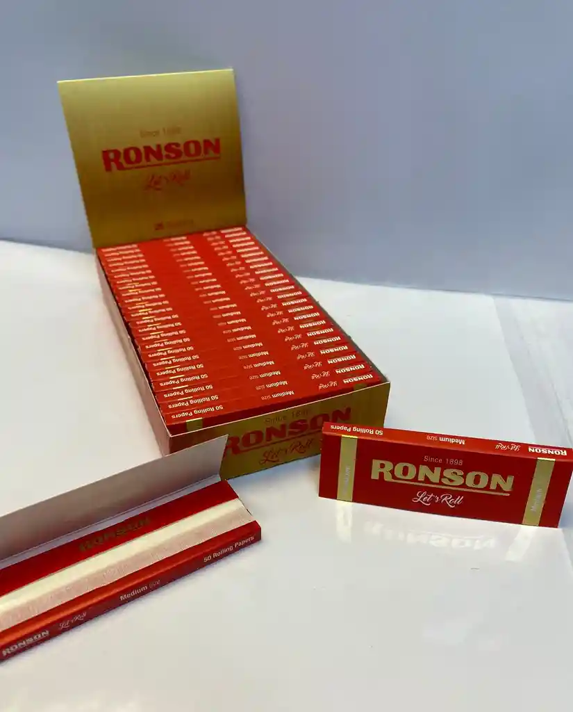 Papelillo Premium Medium Size 25 Booklets - Ronson DESCRIPCIÓN Nombre del producto: Papel fumar ronson premium 11/4 50x25 Marca del producto: ronson Modelo: Medium quality Descripción del producto: Librillo 50 hojas