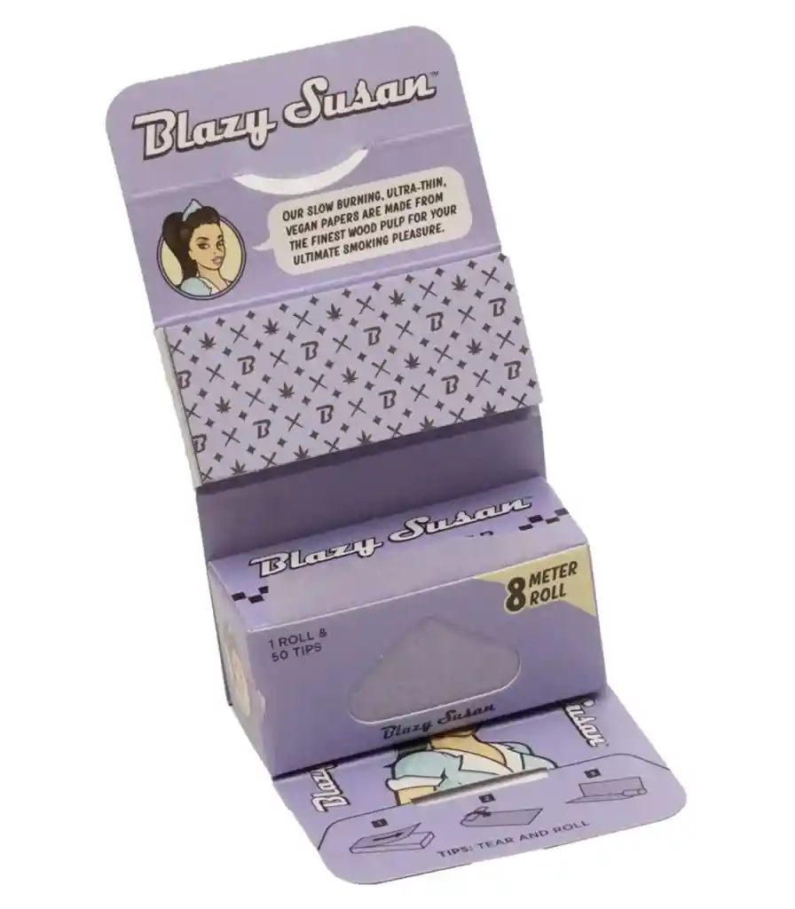 Experimenta una experiencia completa con este kit. El papelillo de combustión lenta es libre de GMO y de origen vegano, cumpliendo nuestros estándares de calidad. Además, podrás personalizar las dimensiones de tu enrolado, ya sea para disfrutar a solas o compartir con amigos. Eleva tu experiencia de fumar con estilo y calidad con el Roller Kit Morado de Blazy Susan. Unidades por pack: 1 Formato de venta: Unidad Tamaño del librito: 8 mts Cuenta con hojas y 50 filtros. Cuenta con hojas. Cuenta con 50 filtros. Su espesor es de . Fabricado en goma de acacia natural. Con adhesivo. Es producto orgánico. Sus dimensiones son 800cm x .